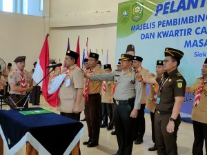 Siak Sri Indrapura – Ketua Kwartir Daerah (Kwarda) Gerakan Pramuka Riau, Kak Kasiarudin SH melantik Majelis Pembimbing Cabang (Mabicab) Gerakan Pramuka Siak masa bakti 2023-2028 yang diketuai Bupati Siak Kak Drs H Alfedri MSi di Gedung Kesenian Siak, Kamis (8/6/2023).