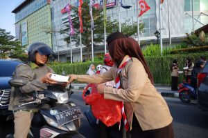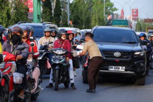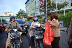 Pekanbaru – Kwartir Cabang (Kwarcab) Gerakan Pramuka Kota Pekanbaru bersama Dewan Kerja Cabang (DKC) Kota Pekanbaru menggelar kegiatan Pramuka Berbagi dengan membagikan 1.000 paket buka puasa kepada para pengguna jalan di simpang lampu merah Living World, Jalan Tuanku Tambusai, Pekanbaru, Kamis (5/3/2026) sore.