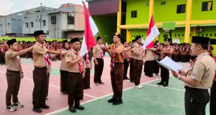 Pekanbaru – Ketua Kwartir Ranting (Kwarran) Gerakan Pramuka Binawidya Kota Pekanbaru kak Irwan Yuliadi S.IP MM melantik Majelis Pembimbing Gugus Depan dan Pengurus Gugus Depan 08-043 dan 08-044 pangkalan SMP An-Namiroh Pekanbaru masa bakti 2024-2026 bertempat di halaman SMP An-Namiroh, Rabu, 4/9/2024. Pelantikan berdasarkan Surat Keputusan Kwarran Binawidya nomor 13 …